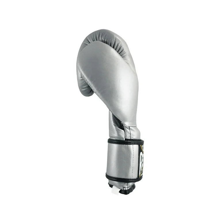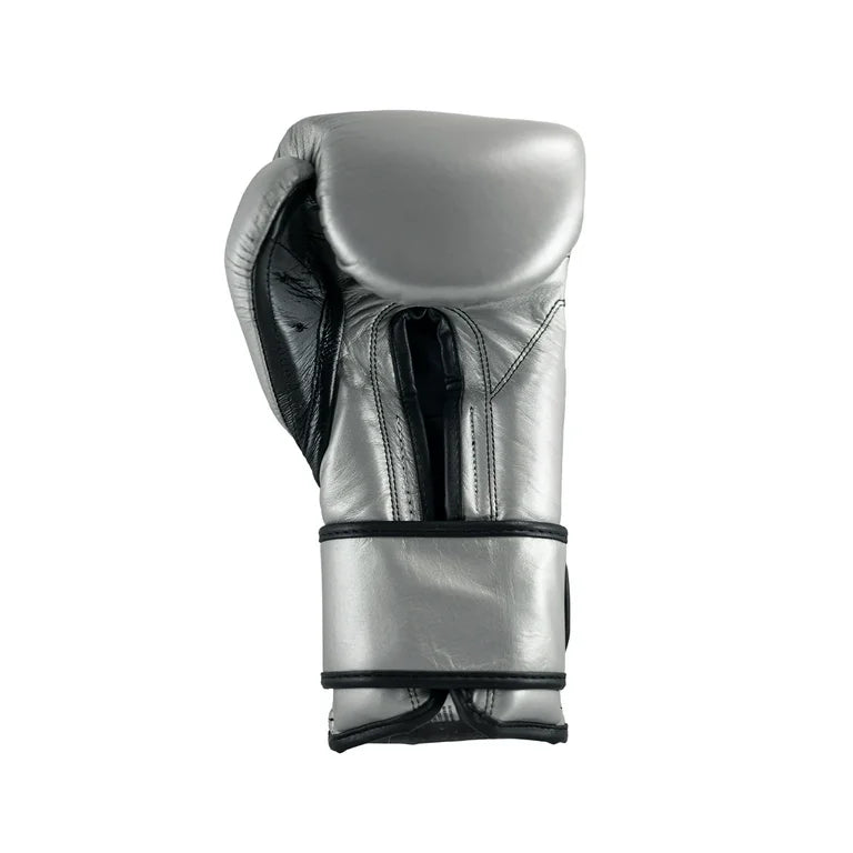 The sleek metallic silver finish gives these gloves a bold, modern look that stands out in the gym or ring. Reinforced stitching, an ergonomic hand compartment, and a moisture-wicking interior lining ensure comfort, breathability, and consistent performance during long training sessions.